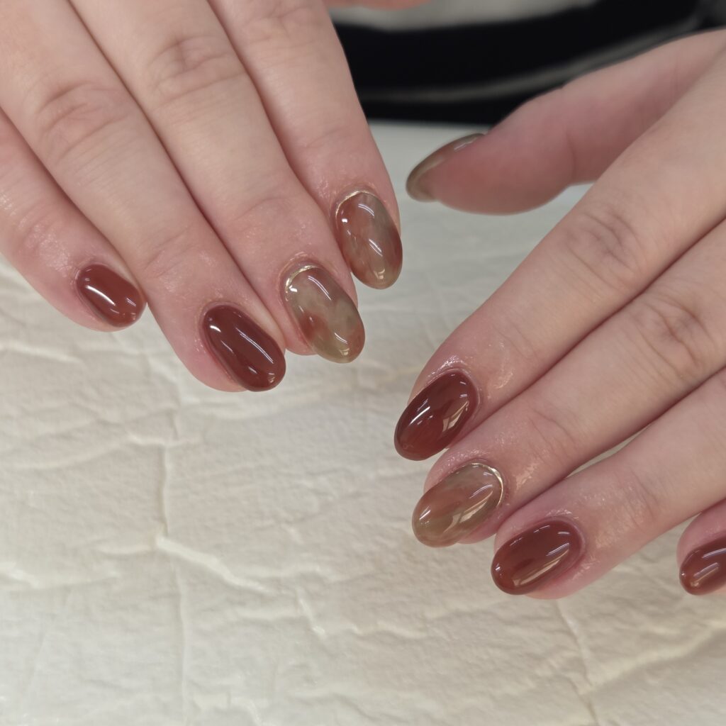 くすみ系の赤と緑で大人クリスマスネイルです♪🎄